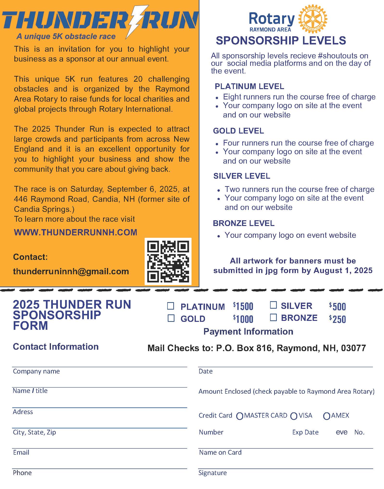*If no-cost runners are included in your level of sponsorship, a code will be shared once payment is received.